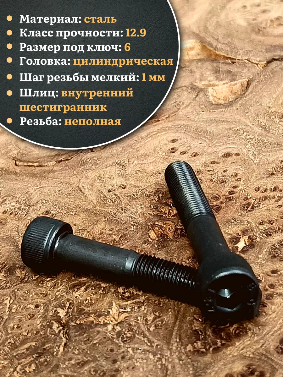 Винт мелкая резьба чёрный к.п.12.9 8х60х1 DIN912, 10 шт.
