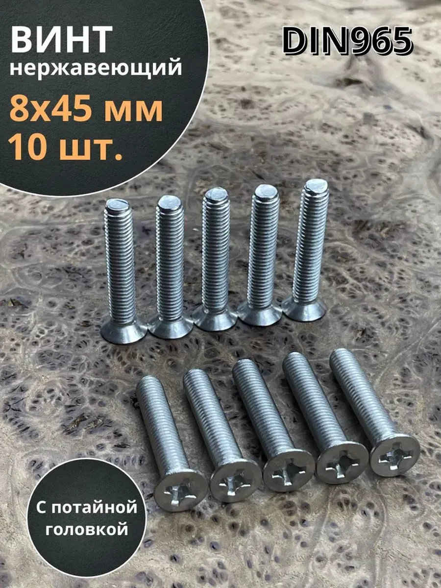 Винт нержавеющий 8х45 мм DIN 965 с потайной головкой ,10 шт