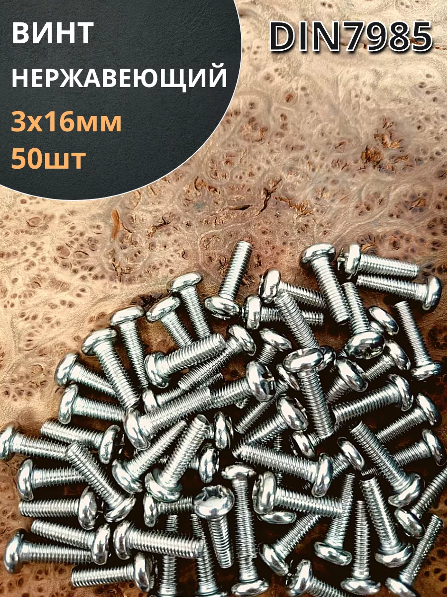 Винт нержавеющий 3х16 мм РН DIN7985, 50 шт.