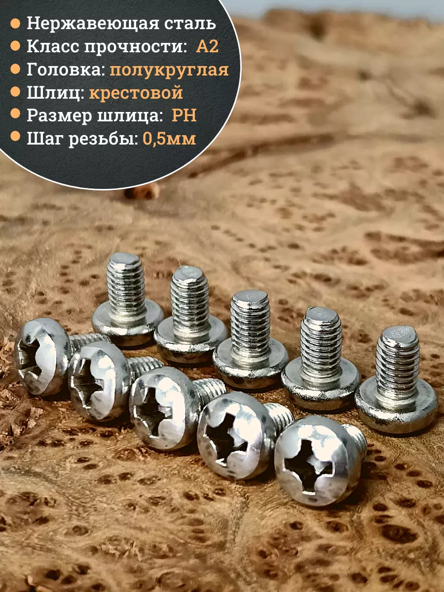 Винт образует разъемное соединение путем ввинчивания в резьбовое отверстие, соответствующее длине и диаметру резьбы стержня. Под его цилиндрическую головку с полусферой подкладывается соответствующая условиям монтажа нержавеющая шайба – обычная или стопорящая. Крестообразный шлиц PH позволяет точно позиционировать крепеж при ввинчивании отверткой. Винты из нержавейки А2 (пищевая аустенитная сталь AISI 304 с содержанием хрома не менее 12%) проявляют стойкость к ржавлению в обычных условиях, слабоагрессивным средах и при высокой влажности. Они не окисляются, гигиеничны, не проявляют магнитные свойства и сохраняют эстетичный вид, благодаря чему широко востребованы при сборке приборов, электротехники, компьютеров и оборудования для пищевой отрасти и медицины. Винт с полукруглой головкой (нержавеющий) DIN 7985 применяется для привинчивания к стальному основанию плоских деталей, навесных элементов и листовых материалов из стали и пластмассы.