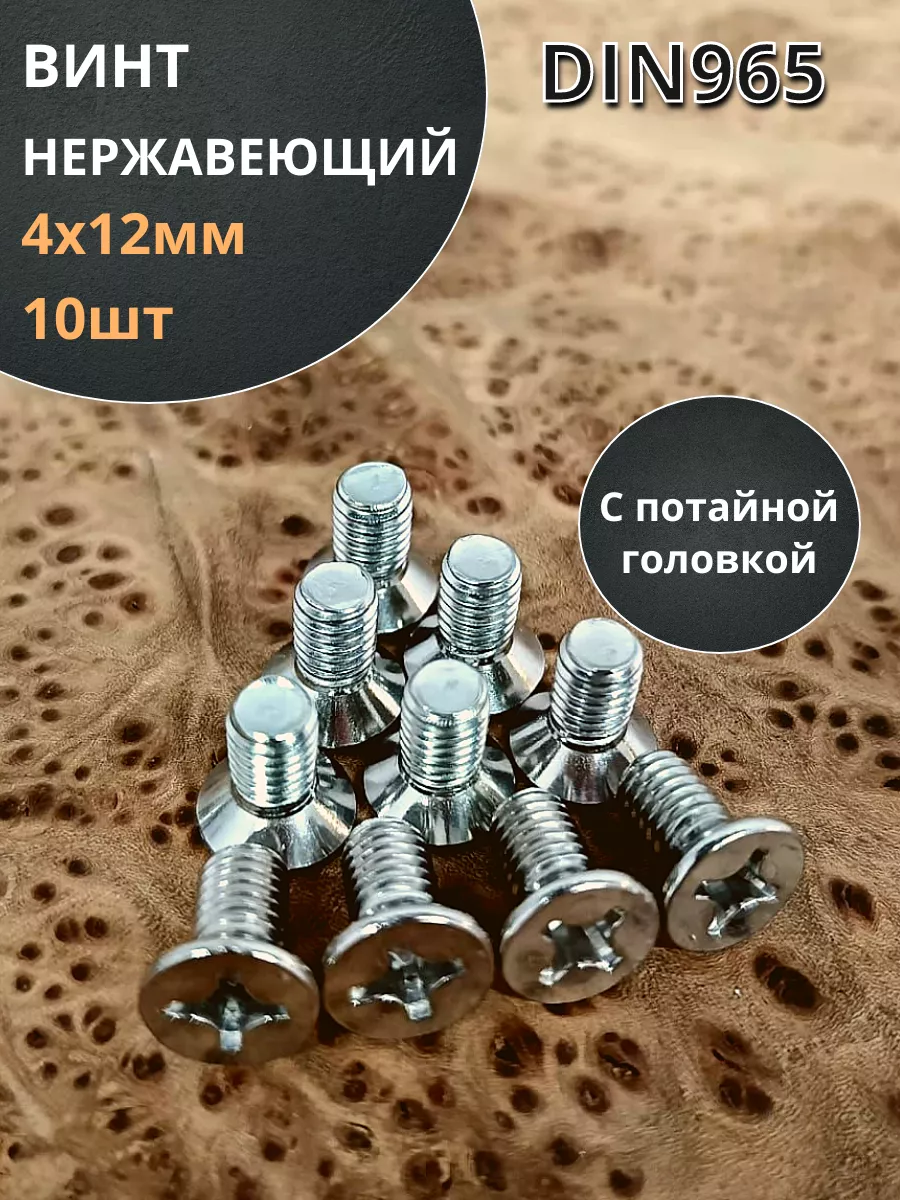 Винт нержавеющий 4х12 мм DIN 965 с потайной головкой ,10 шт