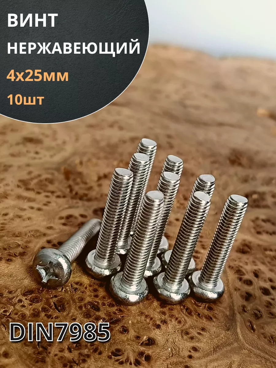 Винт нержавеющий 4х25 мм РН DIN7985 , 10 шт.