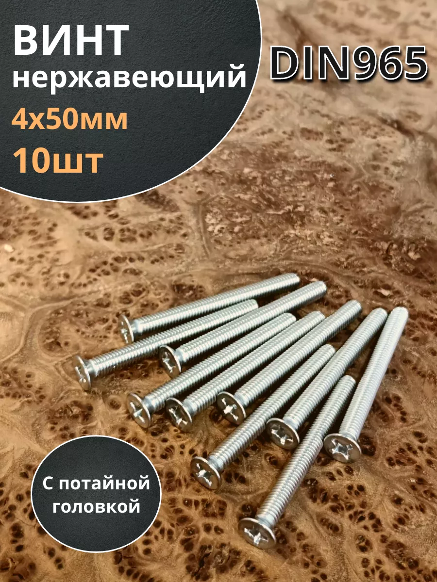 Винт нержавеющий 4х50 мм DIN 965 с потайной головкой ,50 шт впн450ф50 1 шт.