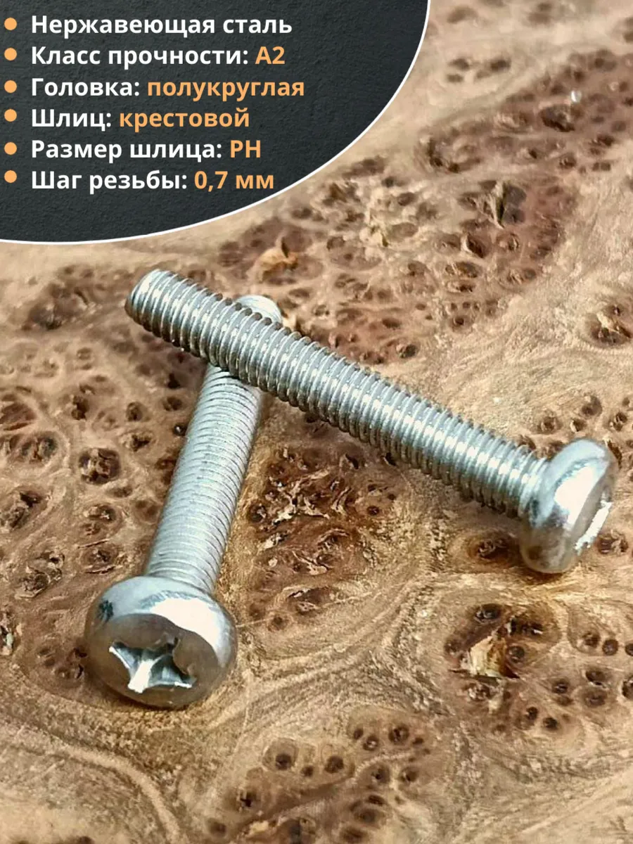 Винт образует разъемное соединение путем ввинчивания в резьбовое отверстие, соответствующее длине и диаметру резьбы стержня. Под его цилиндрическую головку с полусферой подкладывается соответствующая условиям монтажа нержавеющая шайба – обычная или стопорящая. Крестообразный шлиц PH позволяет точно позиционировать крепеж при ввинчивании отверткой. Винты из нержавейки А2 (пищевая аустенитная сталь AISI 304 с содержанием хрома не менее 12%) проявляют стойкость к ржавлению в обычных условиях, слабоагрессивным средах и при высокой влажности. Они не окисляются, гигиеничны, не проявляют магнитные свойства и сохраняют эстетичный вид, благодаря чему широко востребованы при сборке приборов, электротехники, компьютеров и оборудования для пищевой отрасти и медицины. Винт с полукруглой головкой (нержавеющий) DIN 7985 применяется для привинчивания к стальному основанию плоских деталей, навесных элементов и листовых материалов из стали и пластмассы.