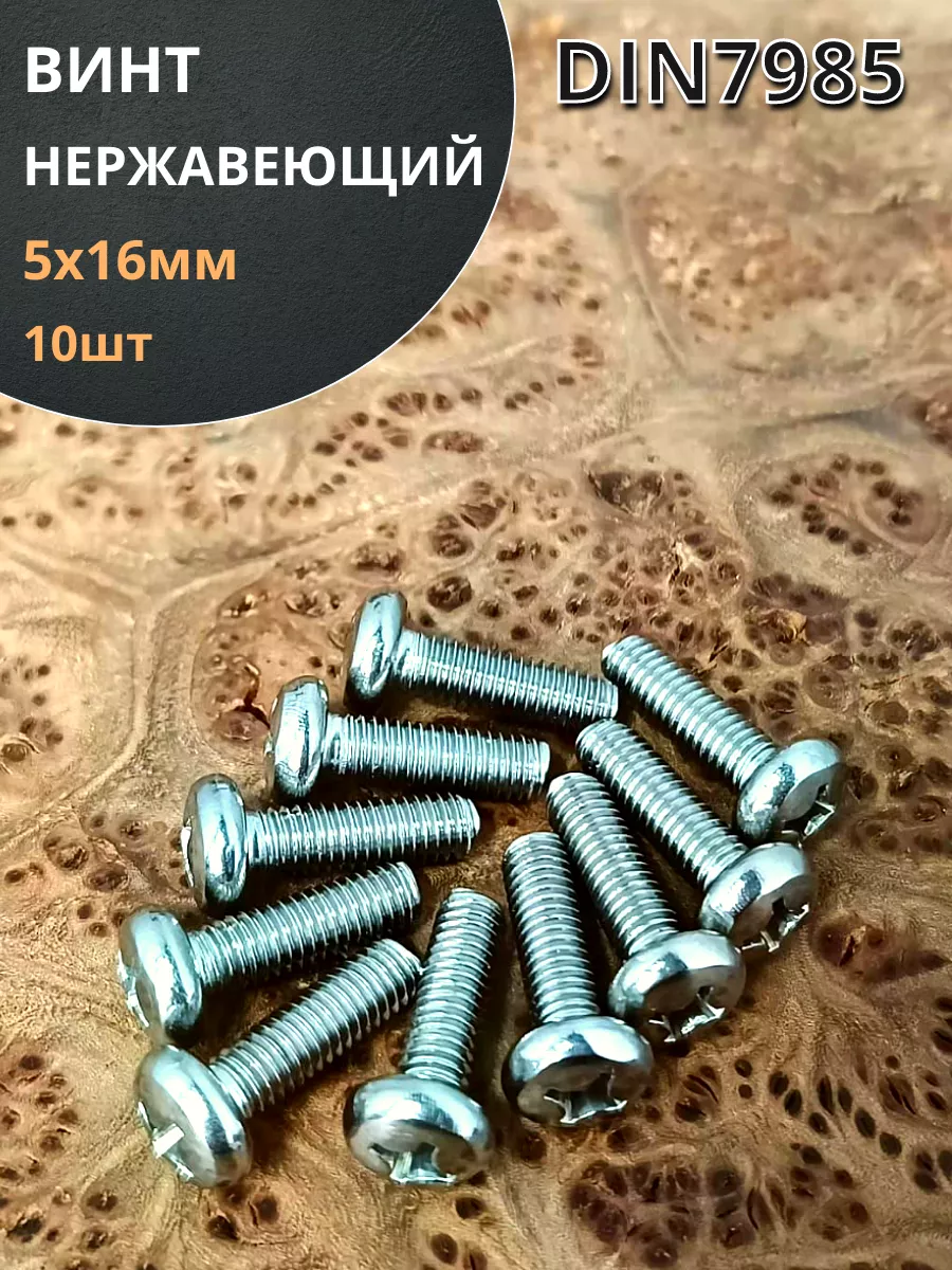 Винт нержавеющий 5х16 мм РН DIN7985 , 10 шт.