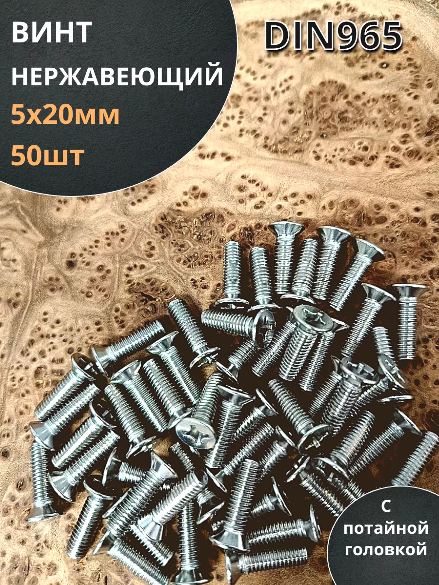 Винт нержавеющий 5х20 мм DIN 965 с потайной головкой ,50 шт