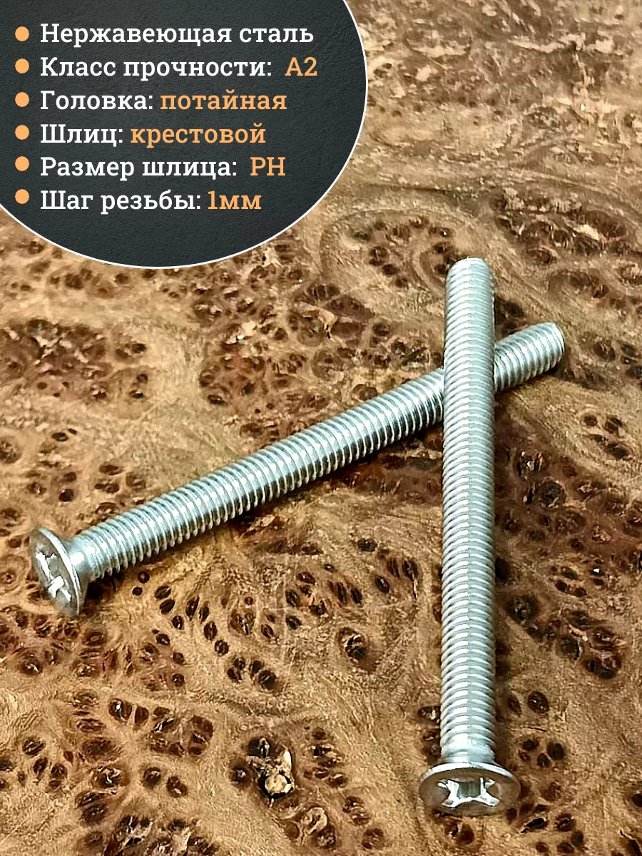 Винт нержавеющий 6х80 мм DIN 965 с потайной головкой ,10 шт
