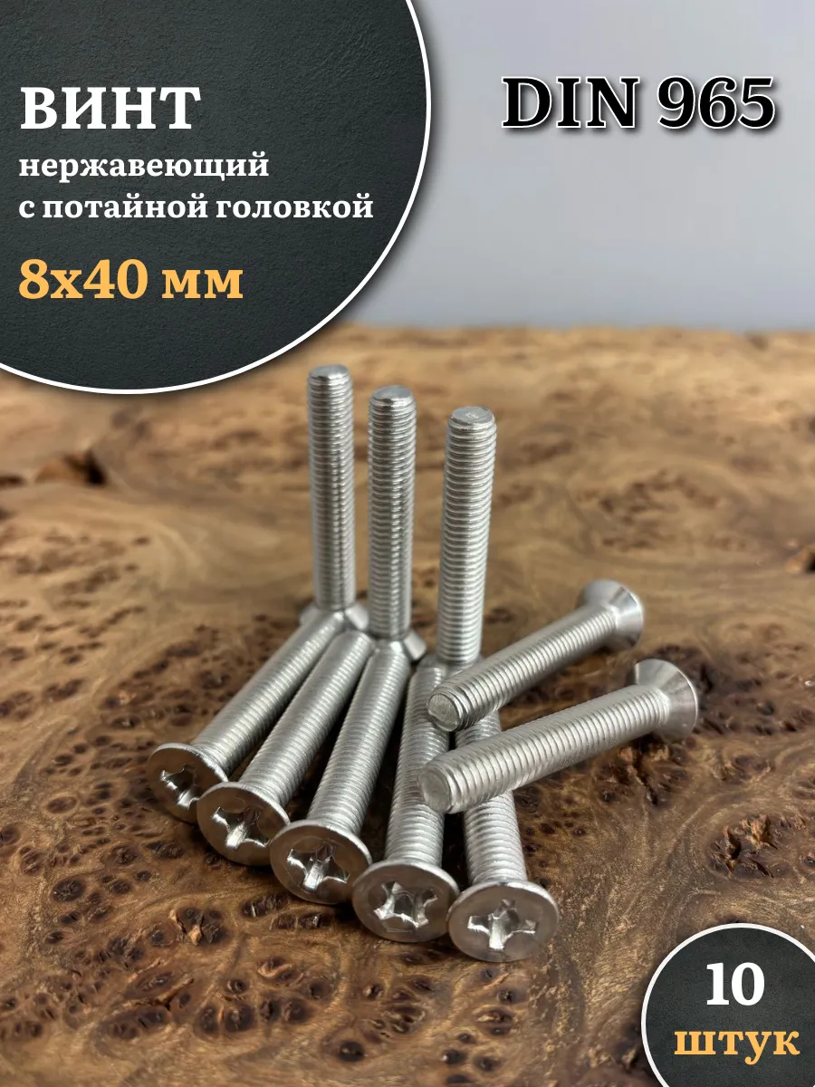 Винт нержавеющий 8х40 мм DIN965 с потайной головкой ,10 шт