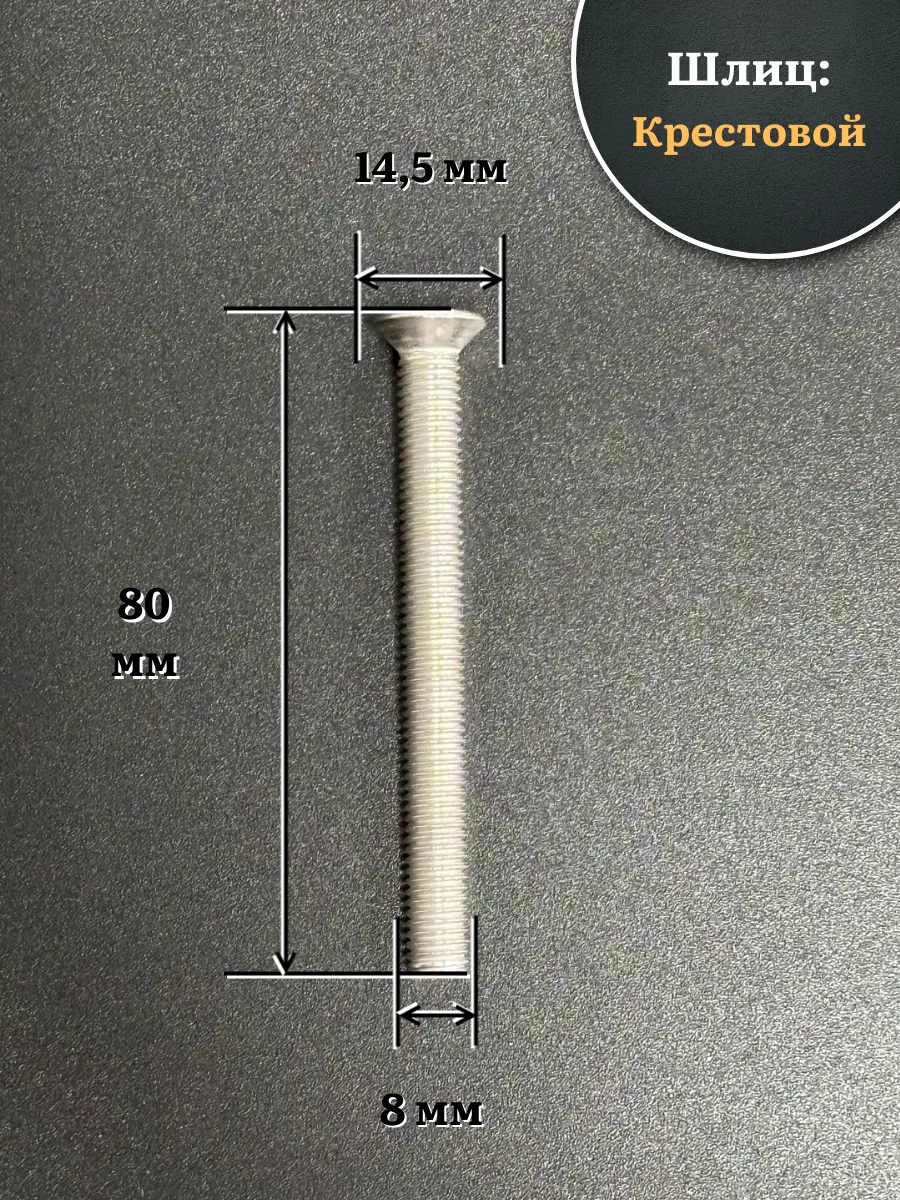 Винт нержавеющий 8х80 мм DIN965 с потайной головкой ,10 шт