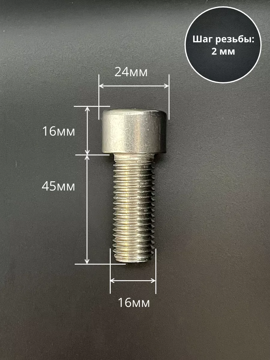 Винт нержавеющий шестигранник М16х45 DIN 912, 4 шт.