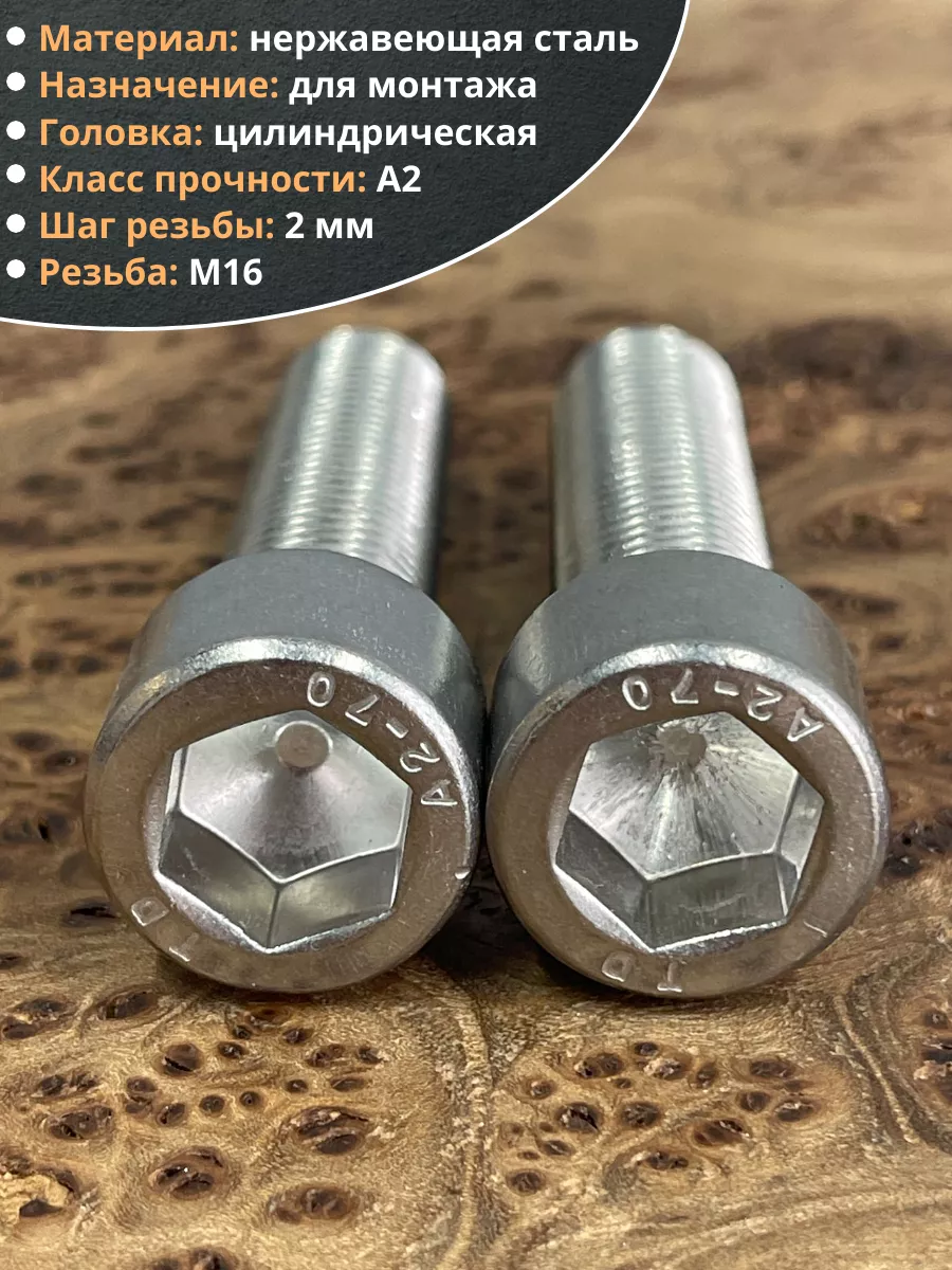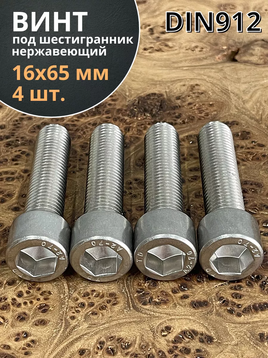 Винт нержавеющий шестигранник М16х65 DIN 912, 4 шт.
