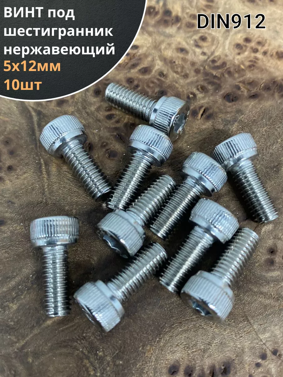 Винт нержавеющий шестигранник М5х12, DIN 912, 10 шт