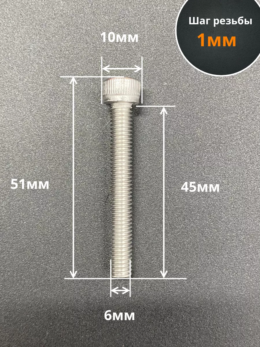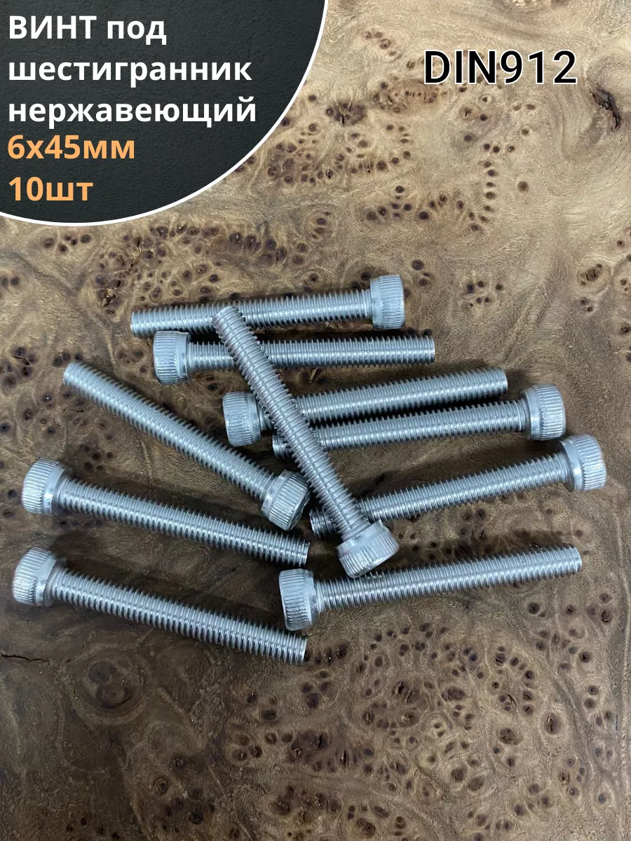 Винт нержавеющий шестигранник М6х45, DIN 912, 10 шт