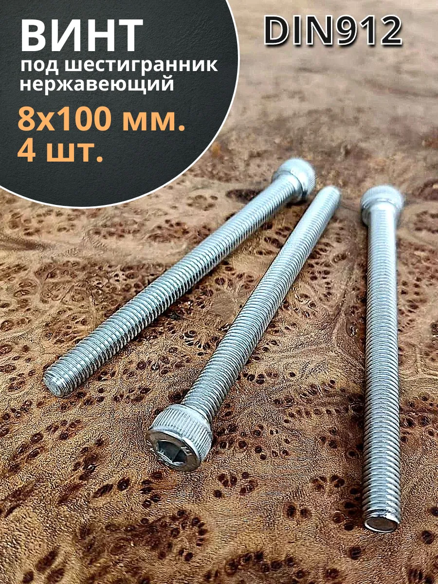 Винт нержавеющий шестигранник М8х100, DIN 912, 4 шт