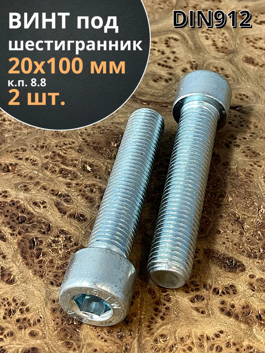 Винт под шестигранник ПР 20х100 мм ОЦ к.п.8.8 DIN912, 2 шт.