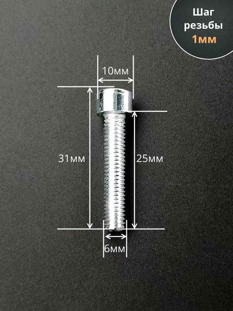 Винт под шестигранник ПР 6х25 мм ОЦ к.п.8.8 DIN912, 10 шт. А0D000602530007 1 шт.