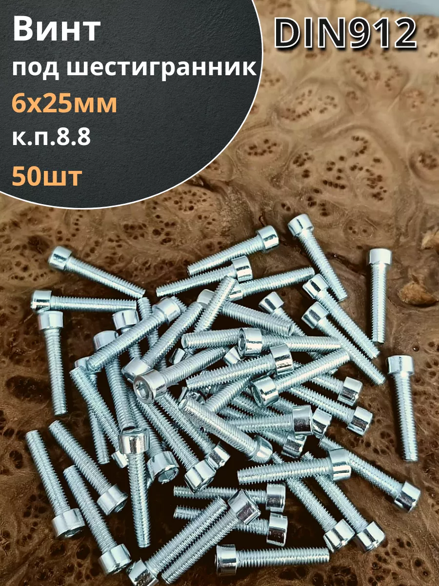 Винт под шестигранник ПР 6х25 мм ОЦ к.п.8.8 DIN912, 50 шт.