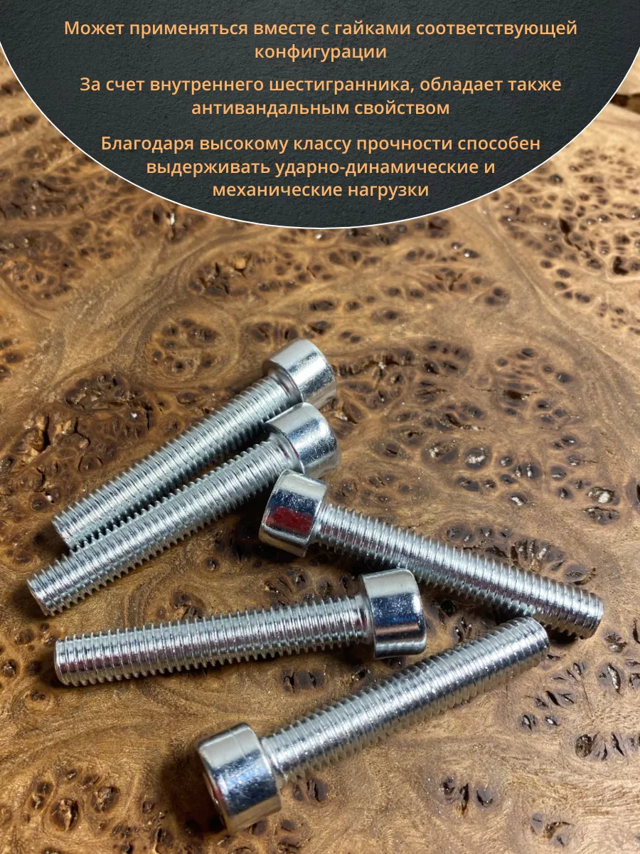Винт DIN 912 представляет собой металлический стержень с метрической резьбой и головкой цилиндрической формы. Изготовляется из разных материалов, в зависимости от области его применения: сталь 8.8,10.9 или 12,9, сталь с оцинкованным покрытием, нержавеющая сталь А2- А5, латунь, пластик. Прочность на разрыв стали подобного класса достаточно высока, поэтому DIN 912 применяют в конструкциях, которые подвержены серьезным нагрузкам. Применяется винт DIN 912 для специфических нужд (соединения различных элементов металлоконструкций совместно с гайками, шайбами соответствующих размеров) в приборостроении, машиностроении, строительных и иных производственно-промышленных отраслях.