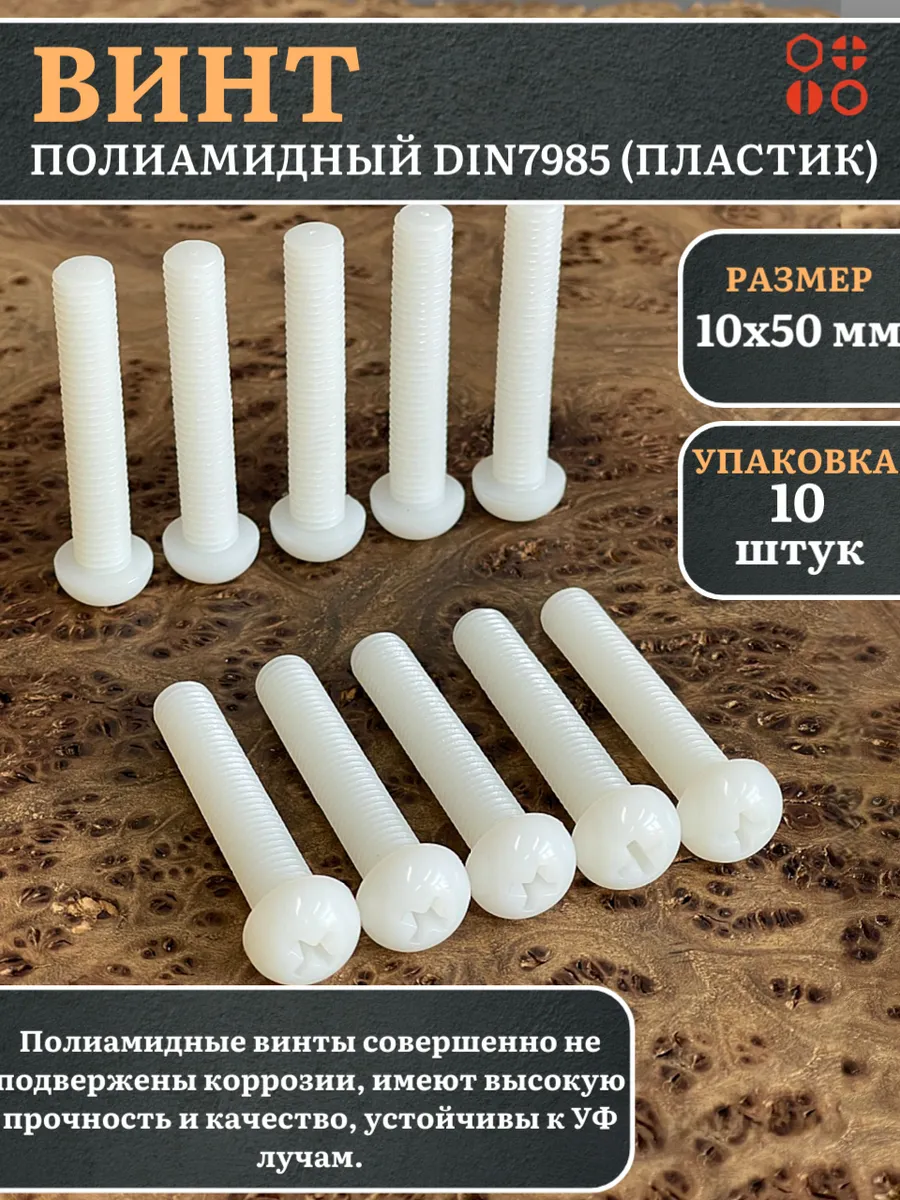 | Винт полиамидный 10х50 мм DIN7985 (пластик), 50 шт. | вп10507985ф50 | 1 шт. |