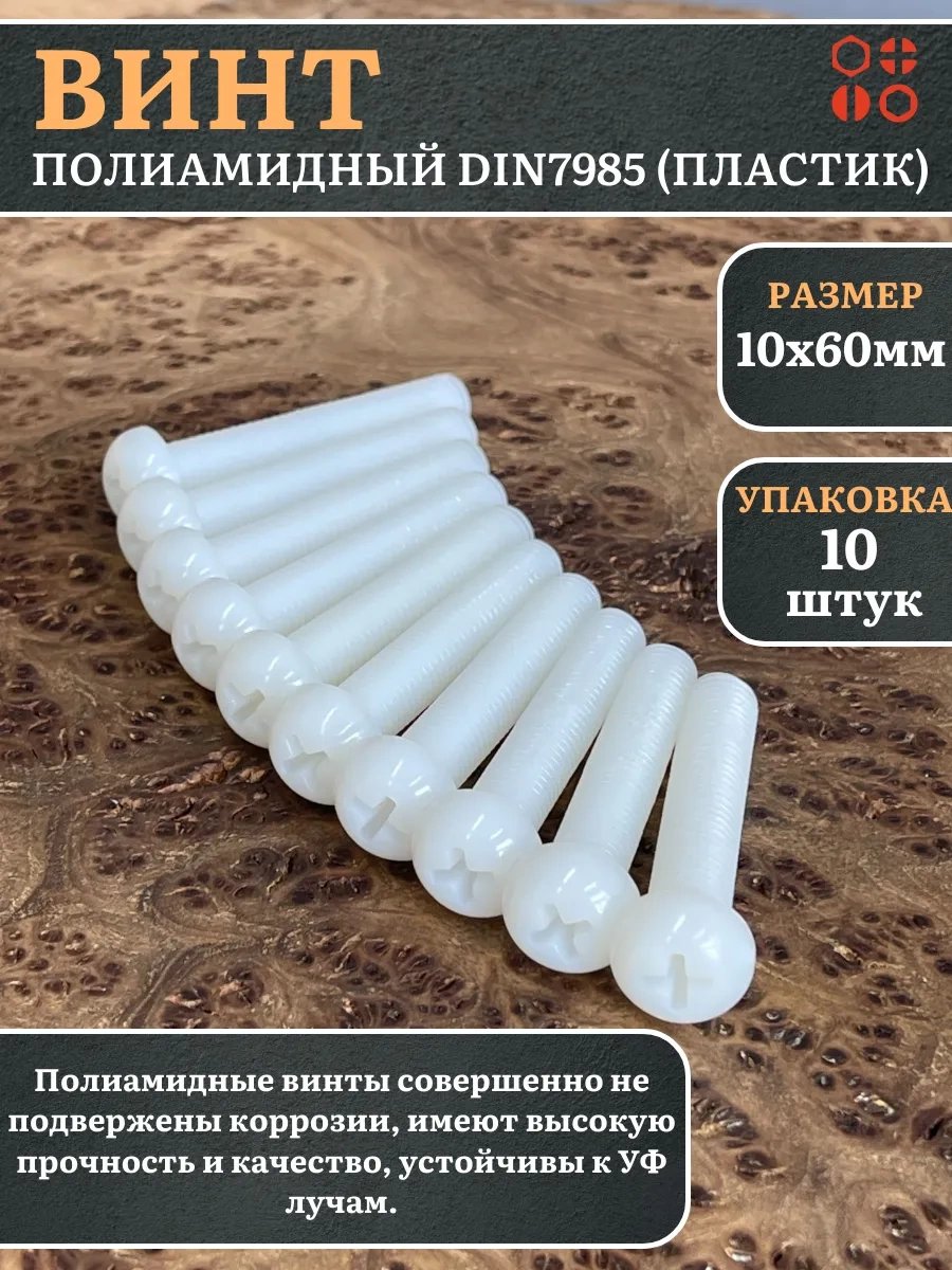 Винт полиамидный 10х60 мм DIN7985 (пластик), 10 шт.