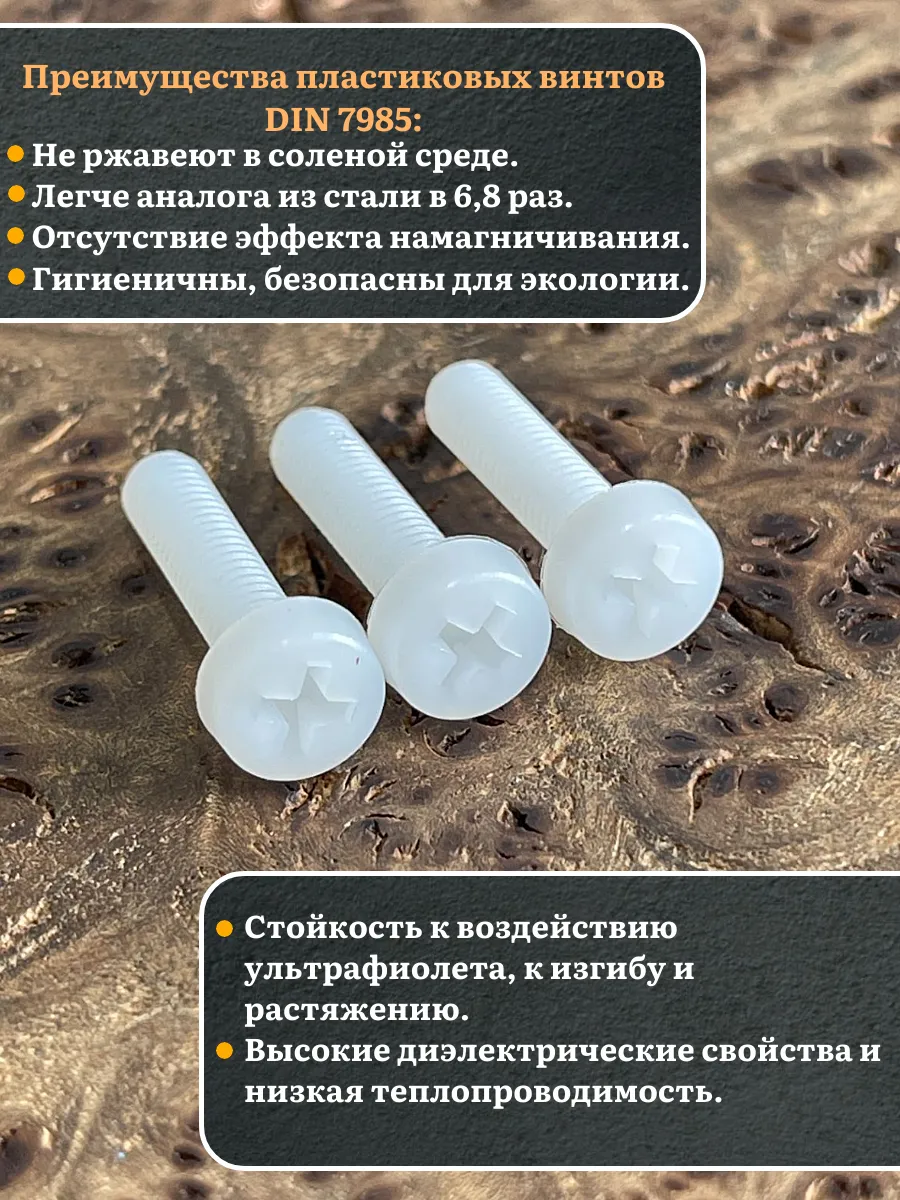 | Винт полиамидный 5х20 мм DIN7985 (пластик), 50 шт. | вп5207985ф50 | 1 шт. |