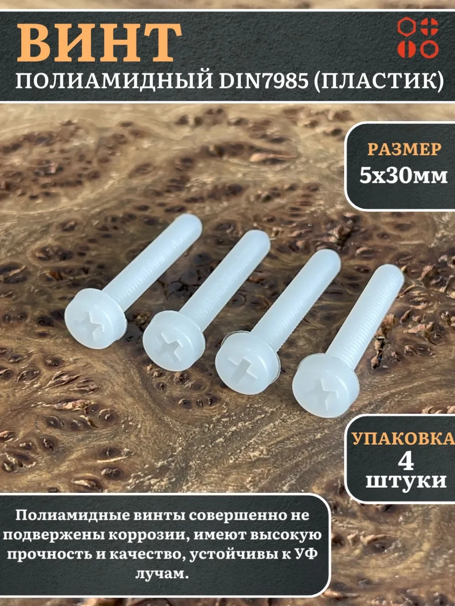 | Винт полиамидный 5х30 мм DIN7985 (пластик), 50 шт. | вп5307985ф50 | 1 шт. |