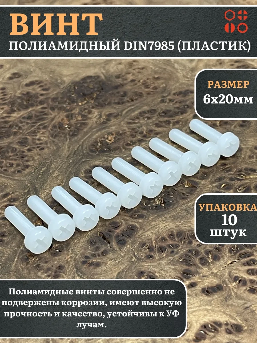 Винт полиамидный 6х20 мм DIN7985 (пластик), 10 шт.