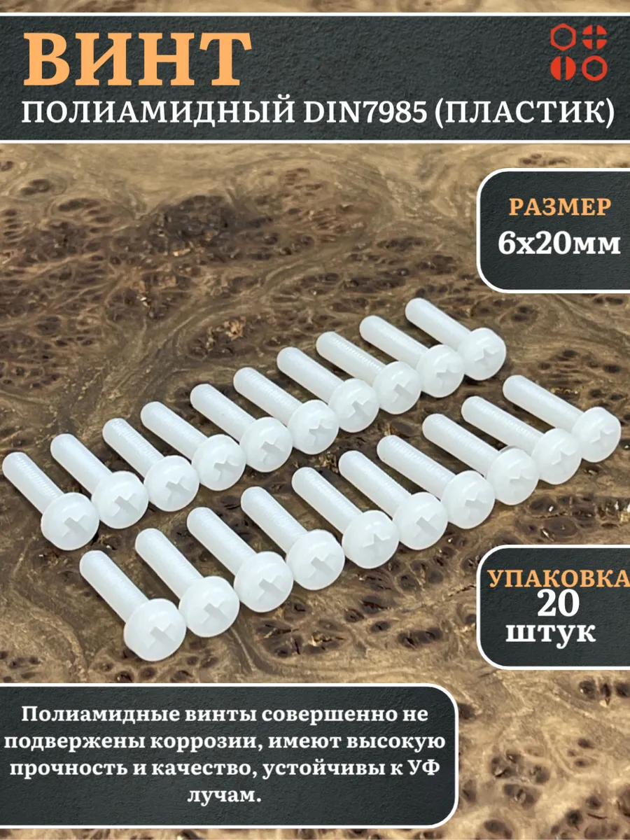 Винт полиамидный 6х20 мм DIN7985 (пластик), 20 шт.