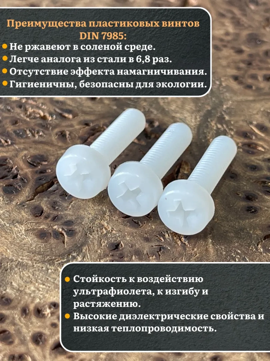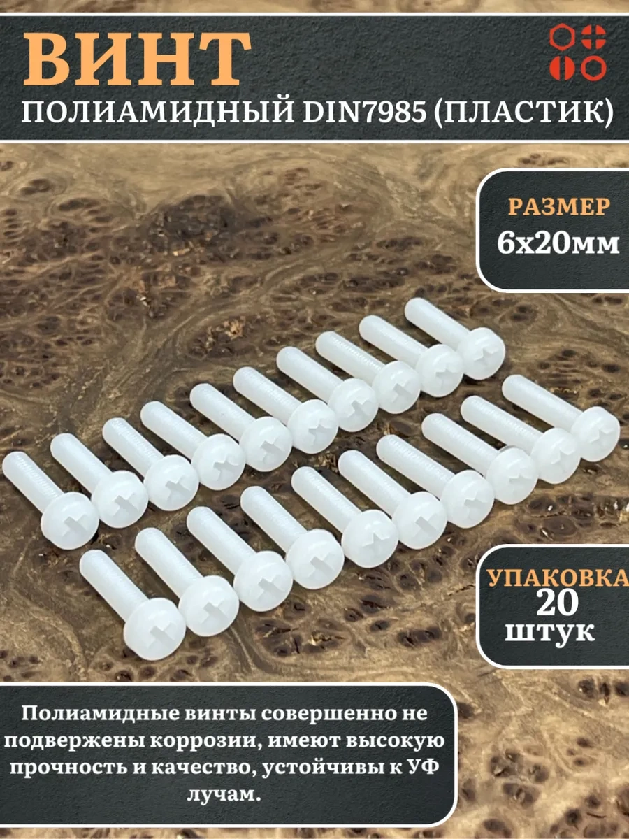 | Винт полиамидный 6х20 мм DIN7985 (пластик), 50 шт. | вп6207985ф50 | 1 шт. |