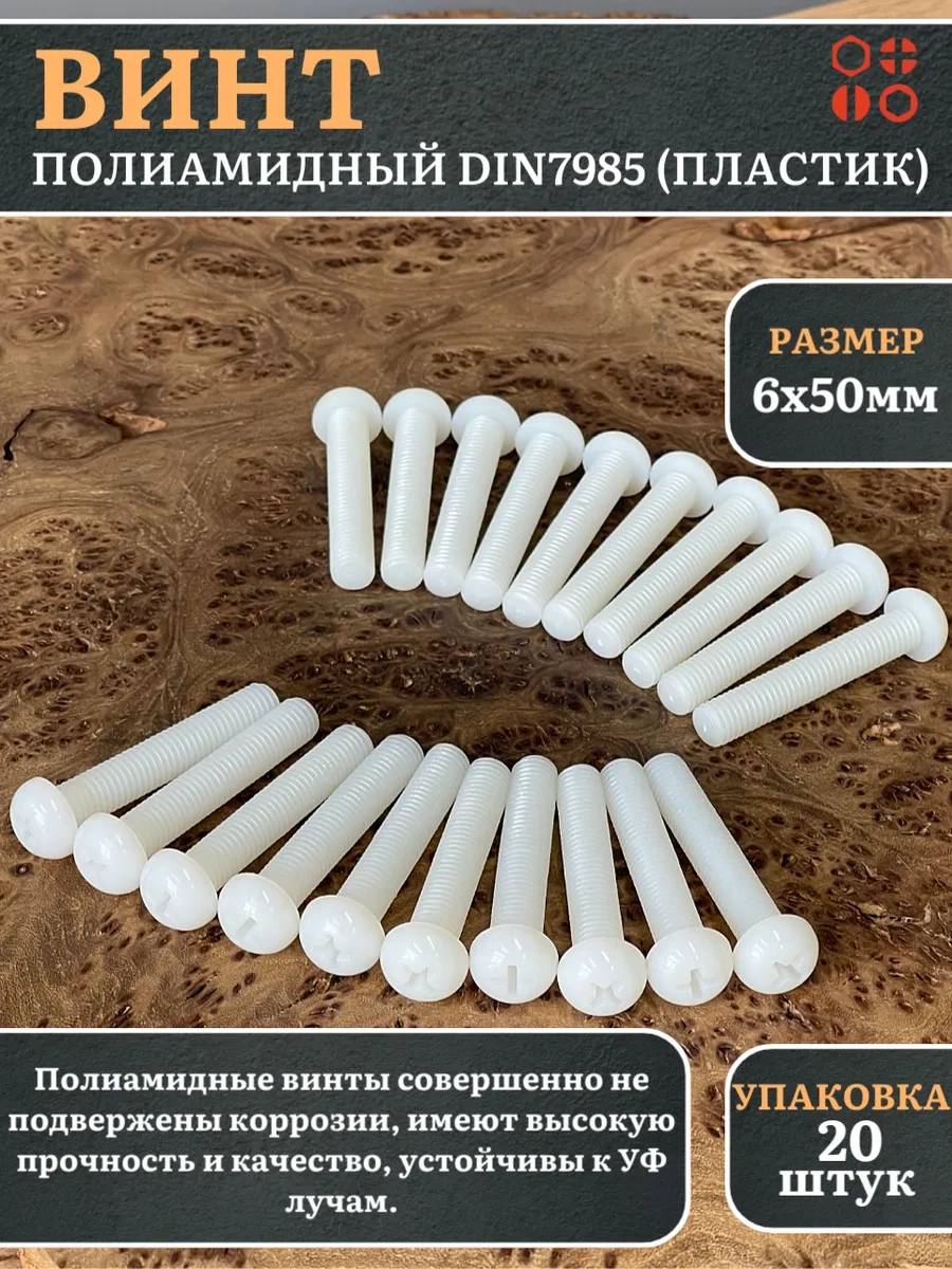 | Винт полиамидный 6х50 мм DIN7985 (пластик), 50 шт. | вп6507985ф50 | 1 шт. |