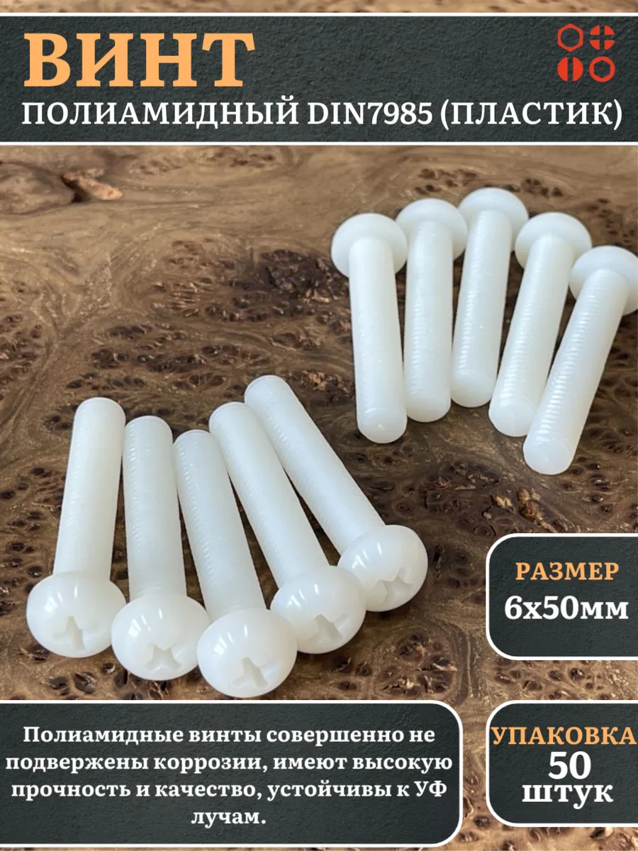 Винт полиамидный 6х50 мм DIN7985 (пластик), 50 шт.