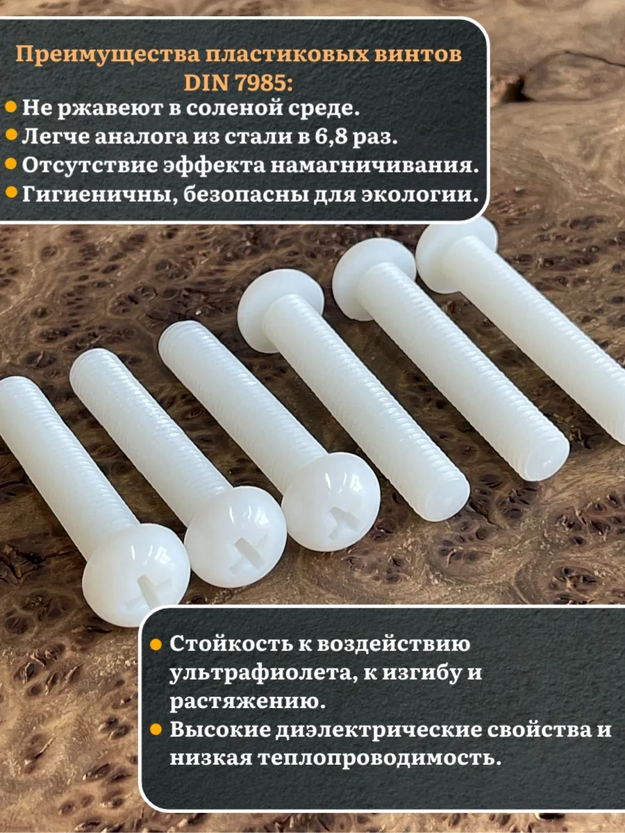 | Винт полиамидный 6х50 мм DIN7985 (пластик), 10 шт. | вп6507985ф10 | 1 шт. |