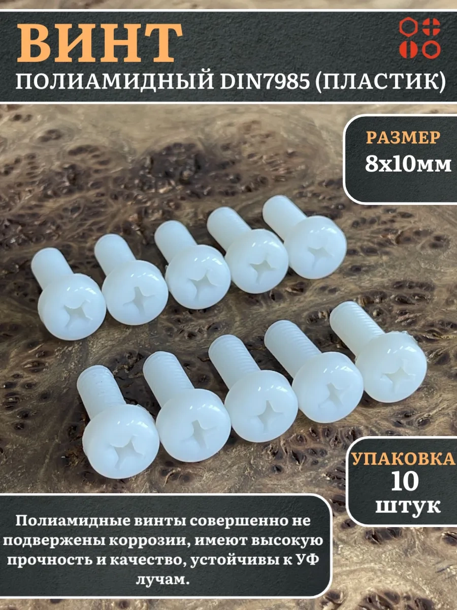 Винт полиамидный 8х10 мм DIN7985 (пластик), 10 шт.