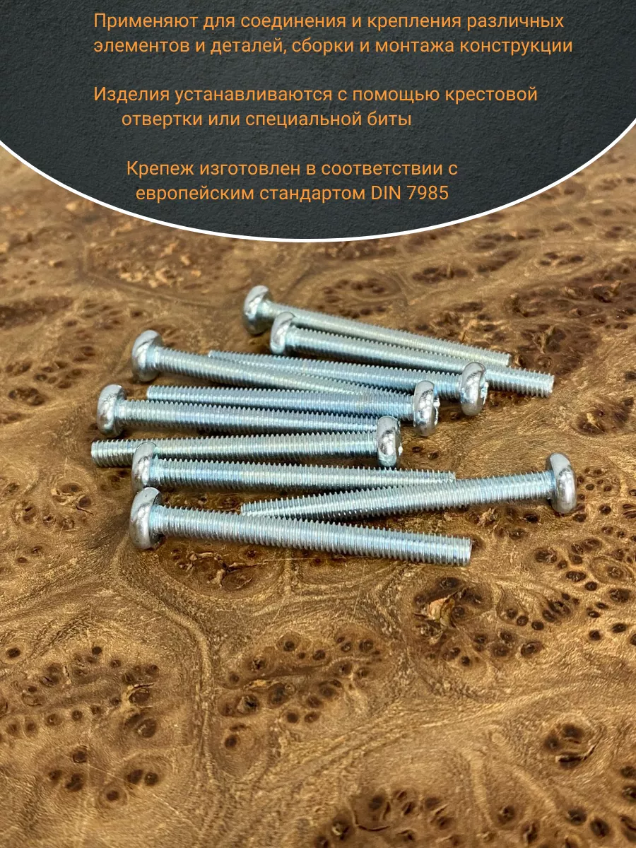 Винт с полукруглой головкой М4х40 ОЦ DIN7985, 10 шт.