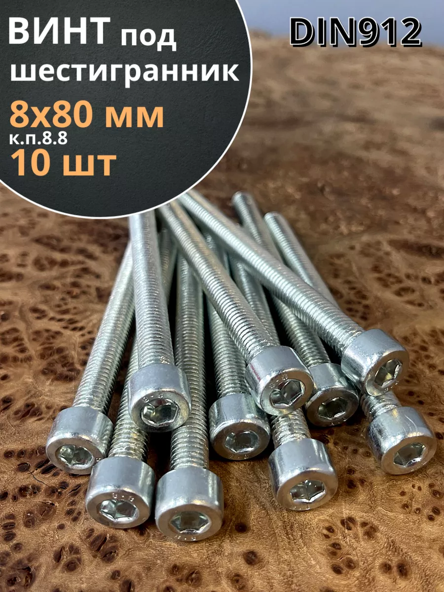 Винт под шестигранник ПР 8х80 мм ОЦ к.п.8.8 DIN912, 10 шт.