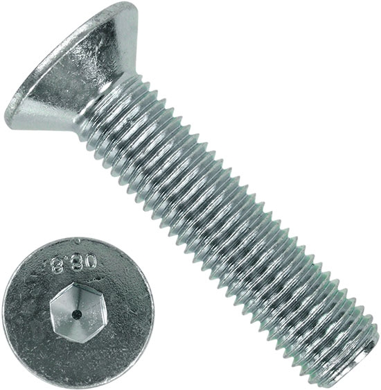 Винты с потайной головкой предназначены для скрепления деталей в конструкциях с высокими требованиями к безопасности и эстетичности. Особая конусная форма головки позволяет “спрятать” ее в прикрепляемой детали. При этом поверхность головки находится в одной плоскости с поверхностью детали. Крепёж с такими свойствами высоко востребован в машино-, автомобилестроении, при сборке бытовой техники, в приборостроении. Конструкция винта DIN 7991 включает стержень с метрической резьбой, потайную головку и шестигранное углубление под ключ для передачи крепежному изделию крутящего момента. Шестигранный внутренний диаметр углубления дает возможность подавать гораздо большее усилие при установке в контакте с ключом или битой. Винты DIN 7991 могут изготавливаться из углеродистых и легированных сталей