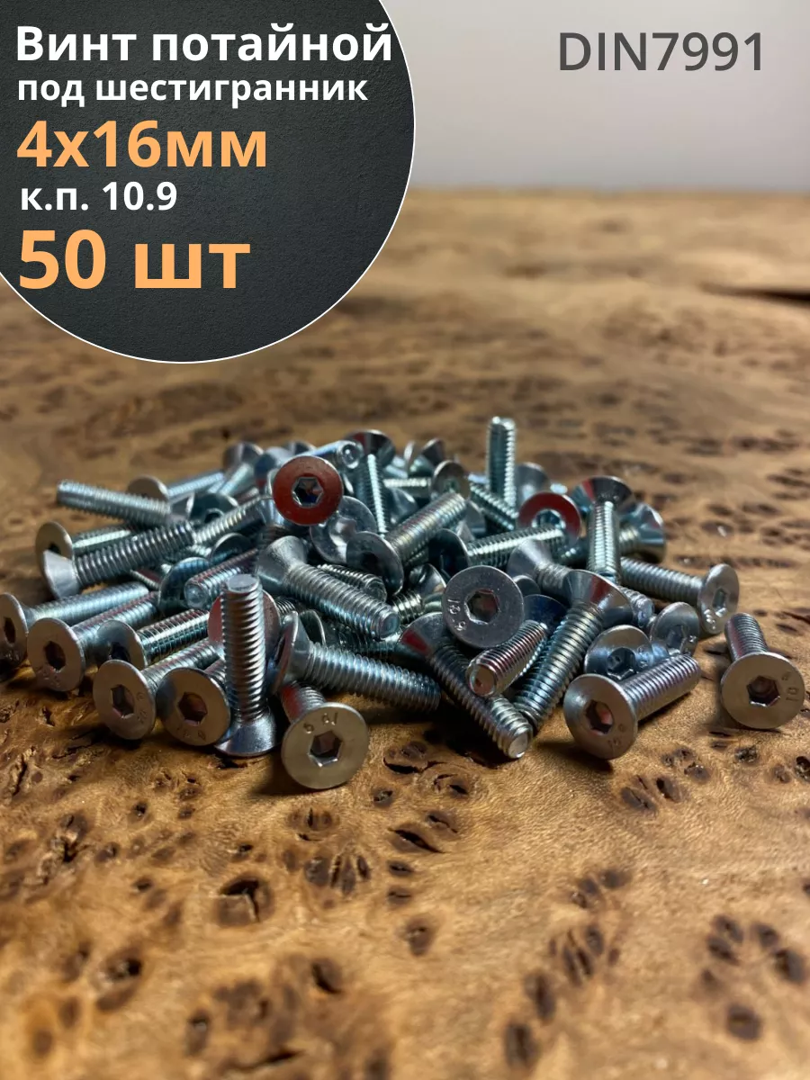 Винт потайной 4х16 под шестигранник ОЦ DIN7991,к.п.10.9 50шт
