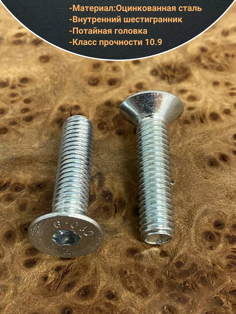 Винт потайной 6х20 под шестигранник ОЦ DIN7991,к.п.10.9 10шт