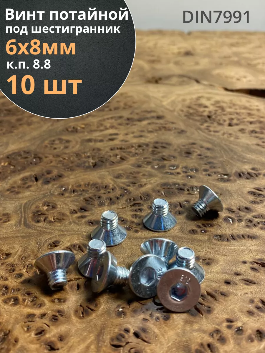 Винт потайной 6х8 под шестигранник ОЦ DIN7991,к.п.10.9 10 шт.