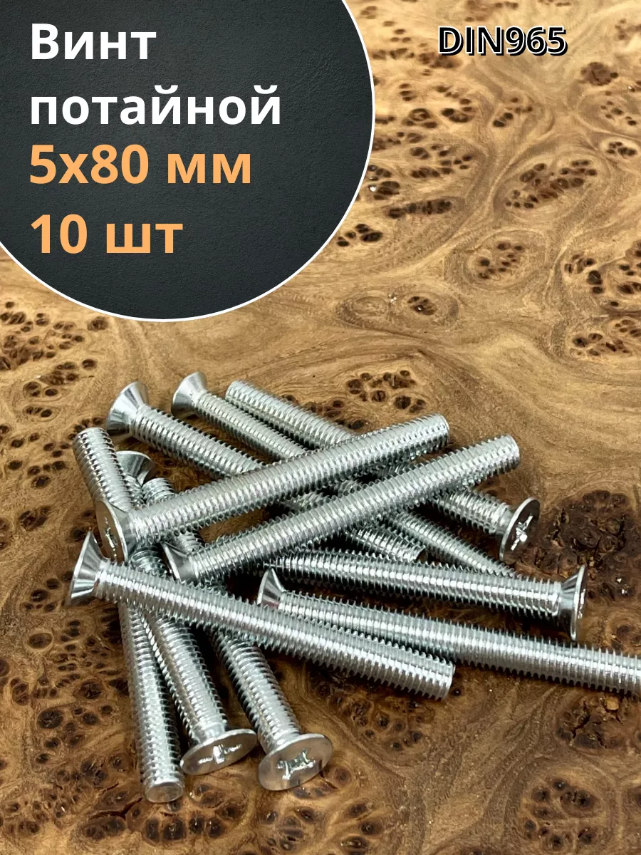 Винт потайной оцинкованный 5х80 DIN965, 10 шт.