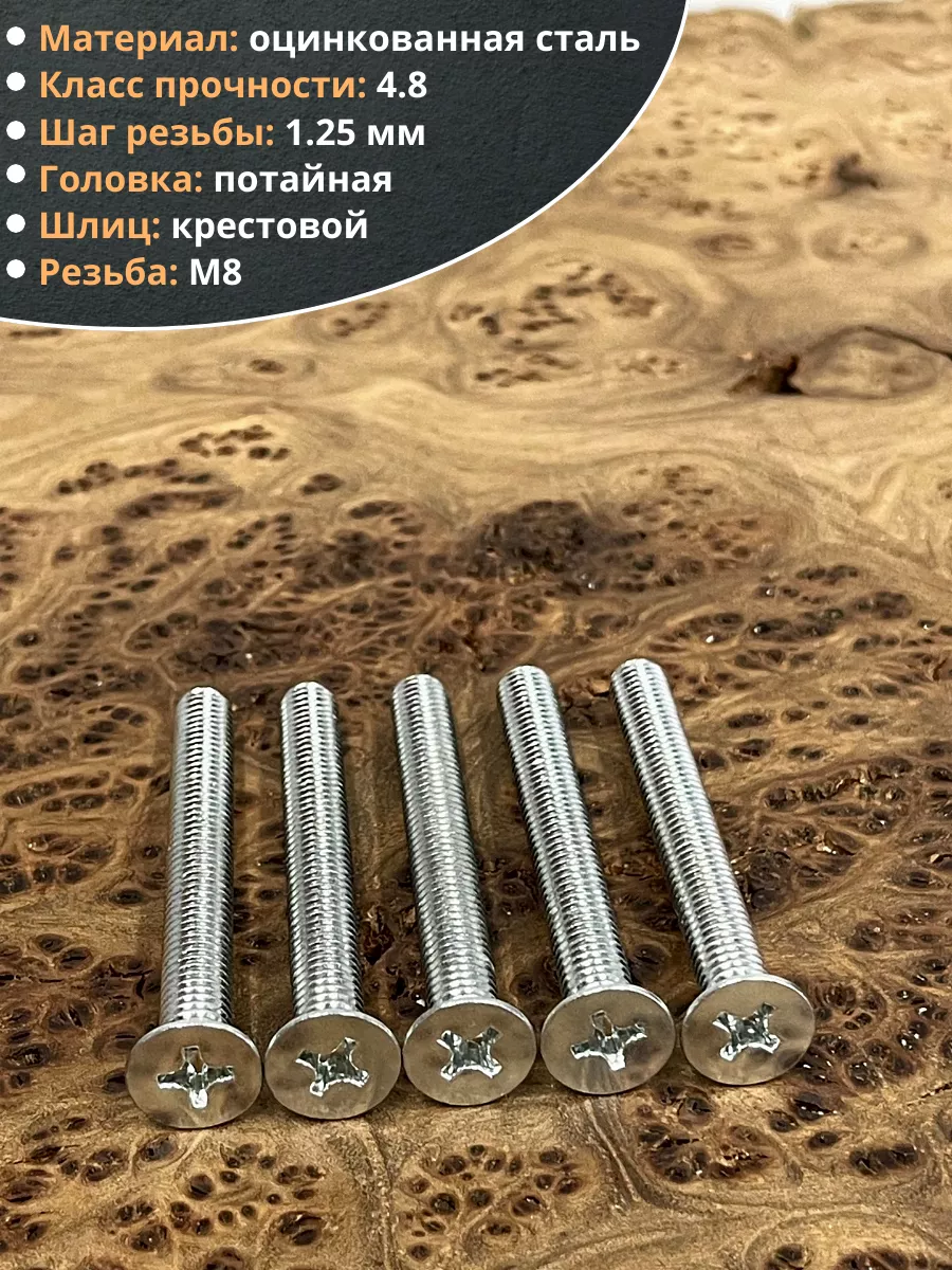 Винт потайной оцинкованный 8х70 DIN965, 50 шт. вп870мрф50 1 шт.