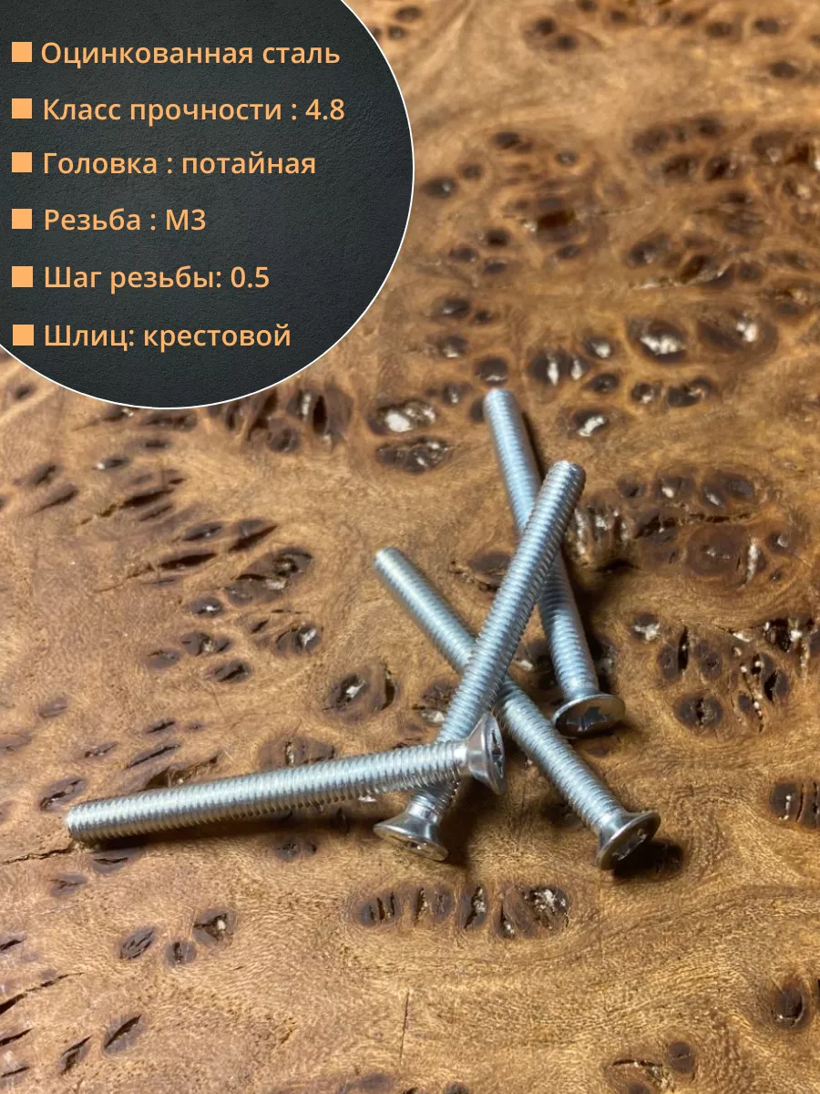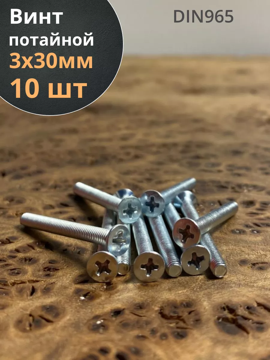 Винт потайной оцинкованный 3х30 DIN965, 10 шт.