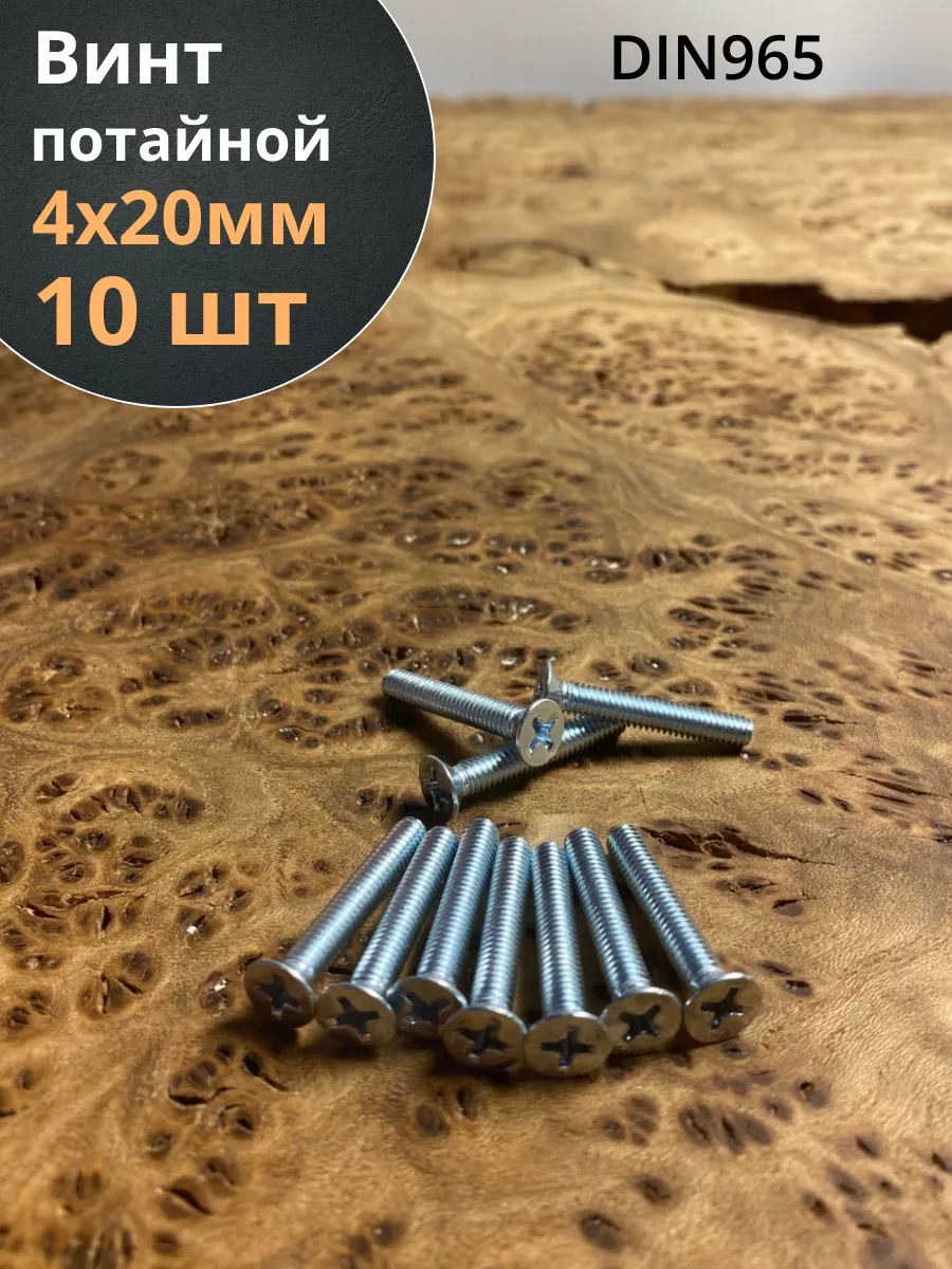 Винт потайной оцинкованный 4х20 DIN965, 10 шт.