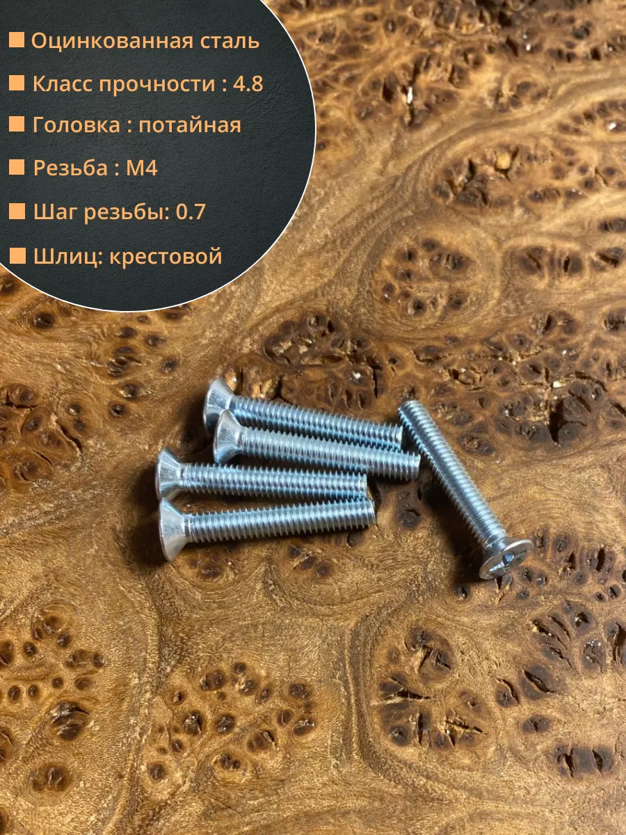 Винт потайной оцинкованный 4х30 DIN965, 50 шт.