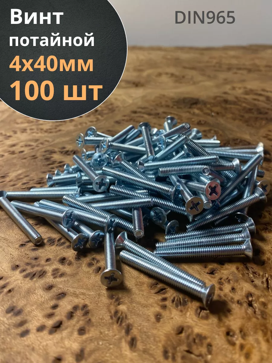 Винт потайной оцинкованный 4х40 DIN965, 100 шт.