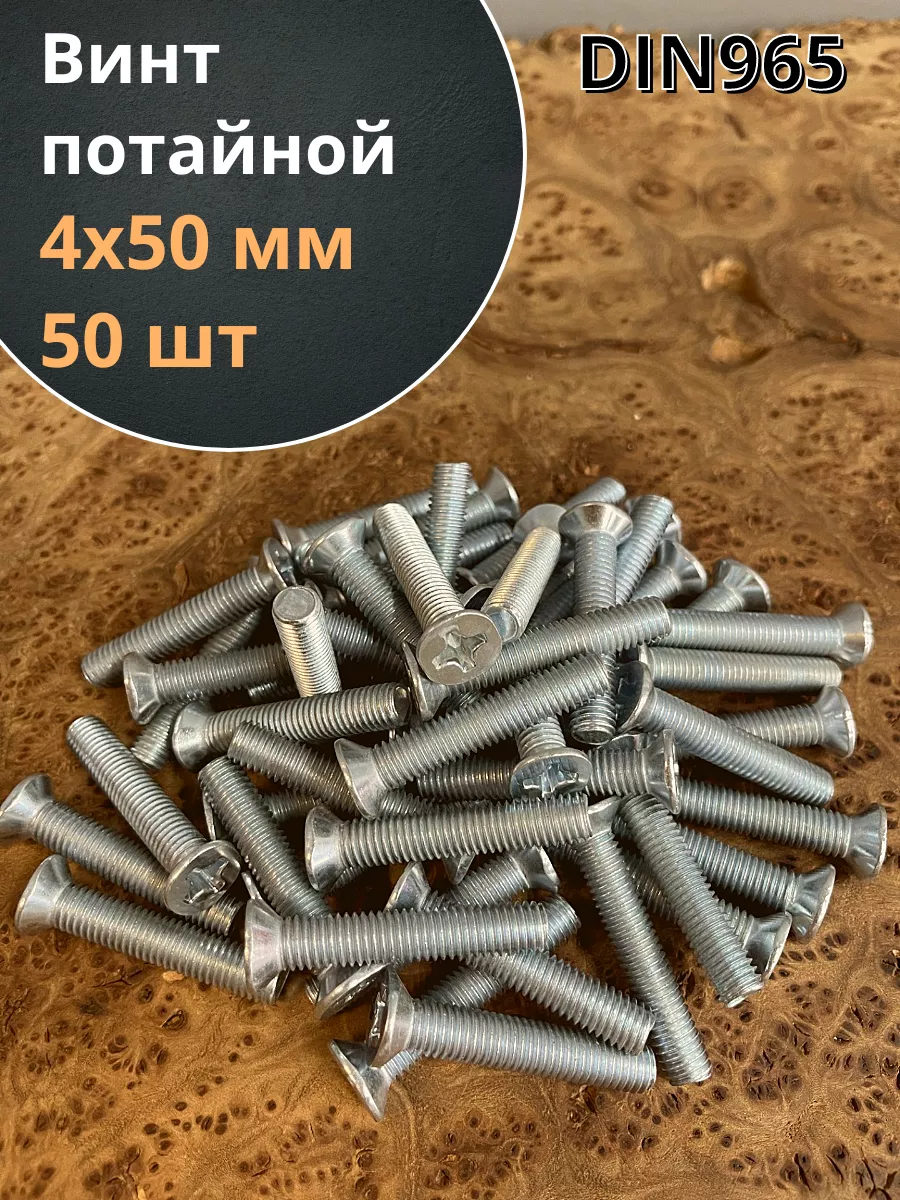 Винт потайной оцинкованный 4х50 DIN965, 50 шт.