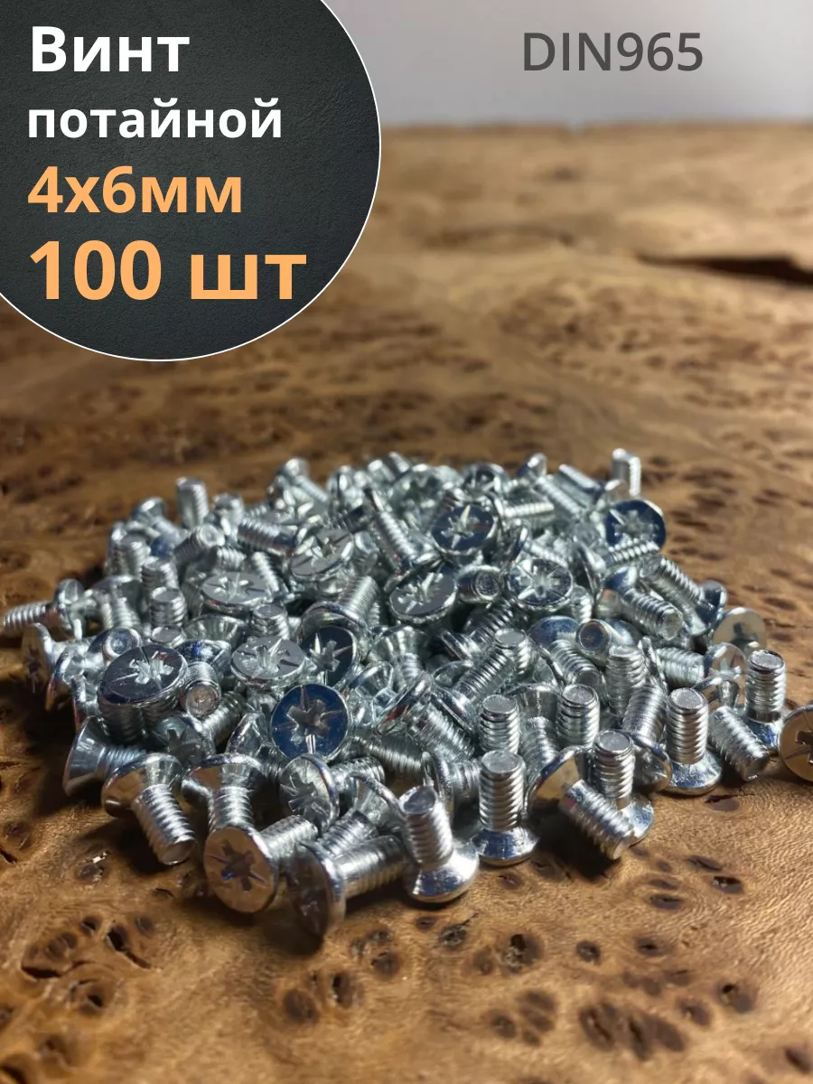 Винт потайной оцинкованный 4х6 DIN965, 100 шт.