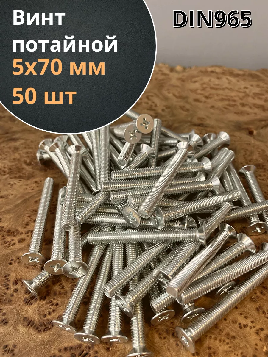 Винт потайной оцинкованный 5х70 DIN965, 50 шт.