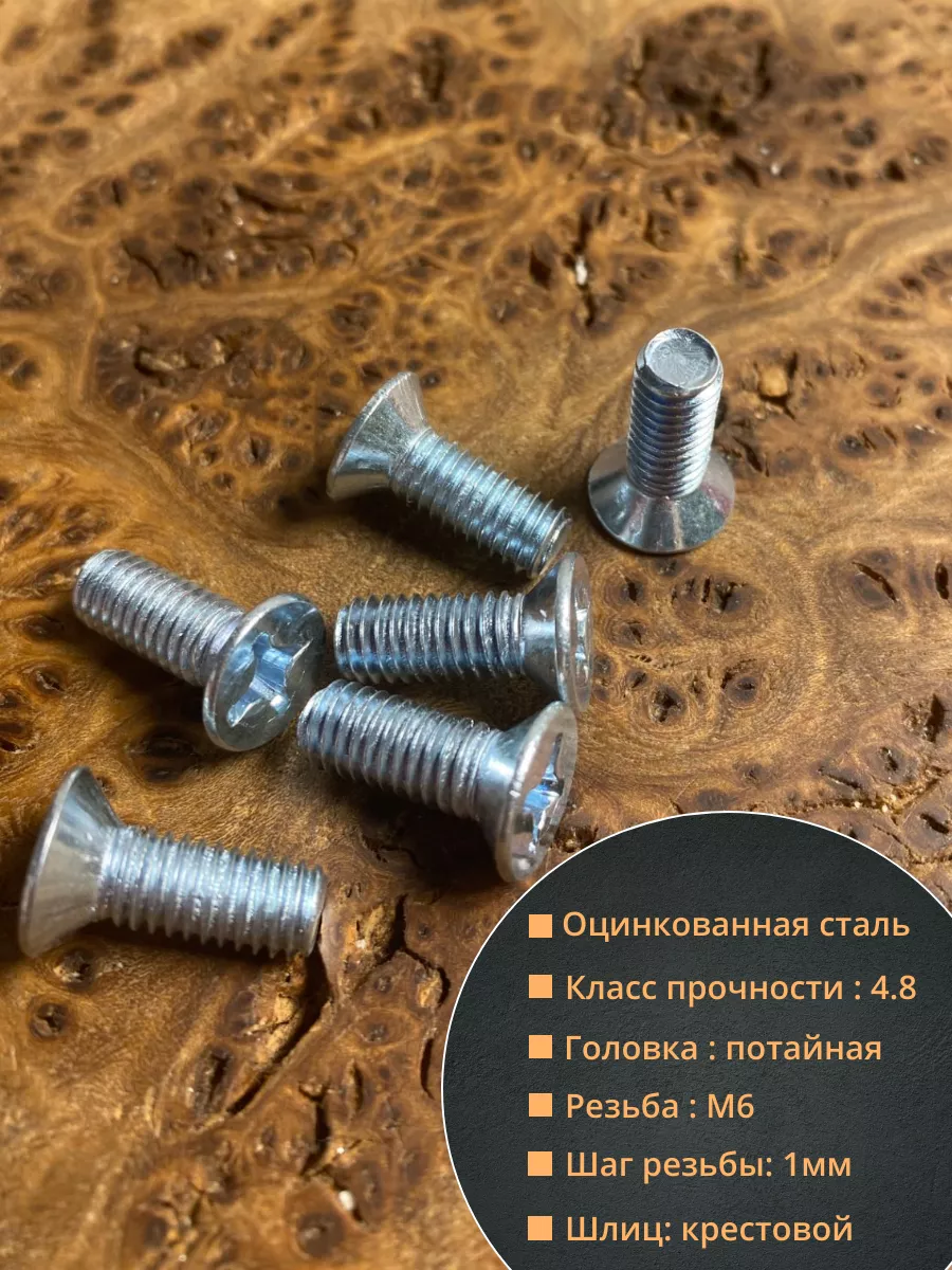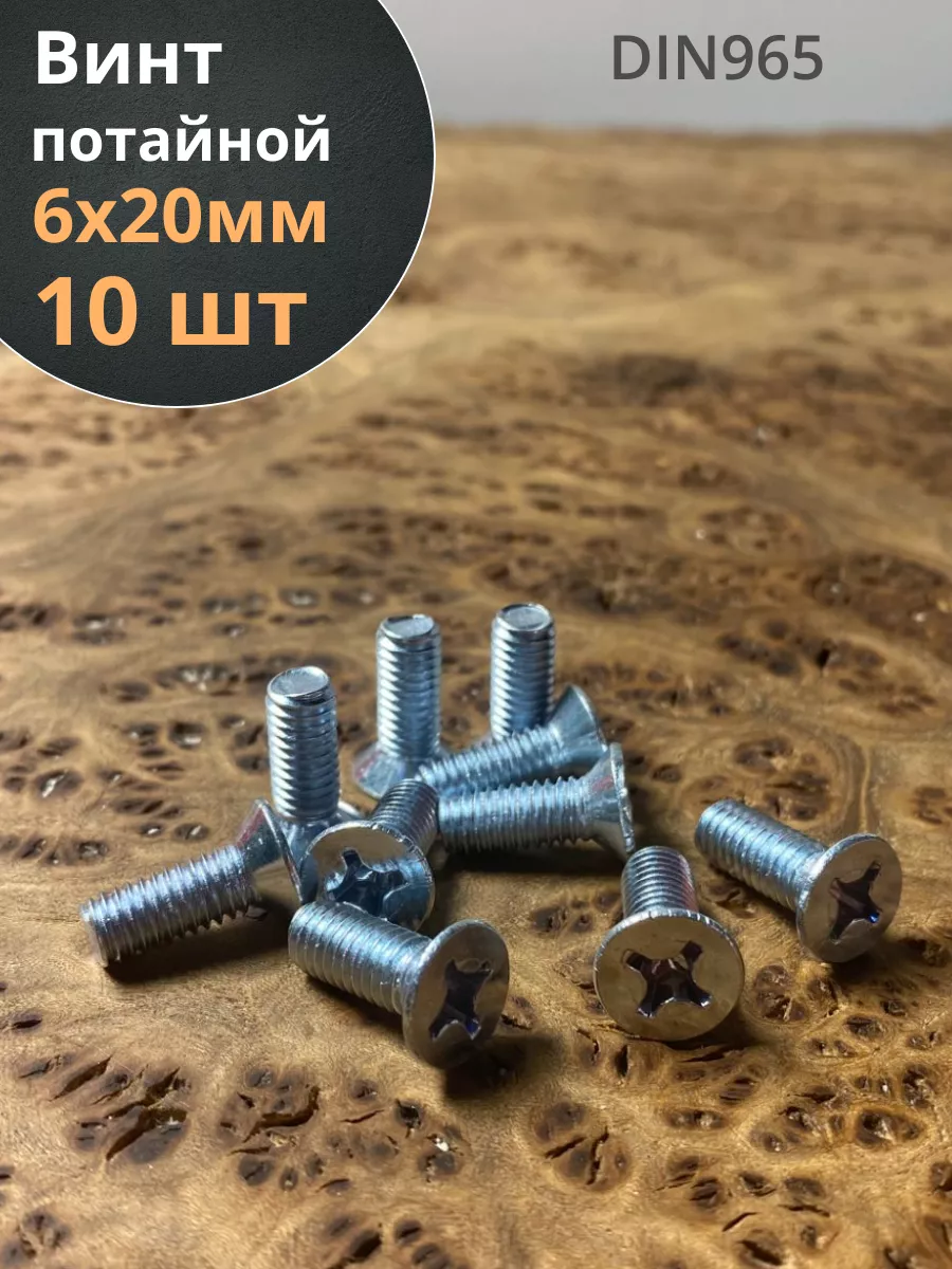 Винт потайной оцинкованный 6х20 DIN965, 10 шт.