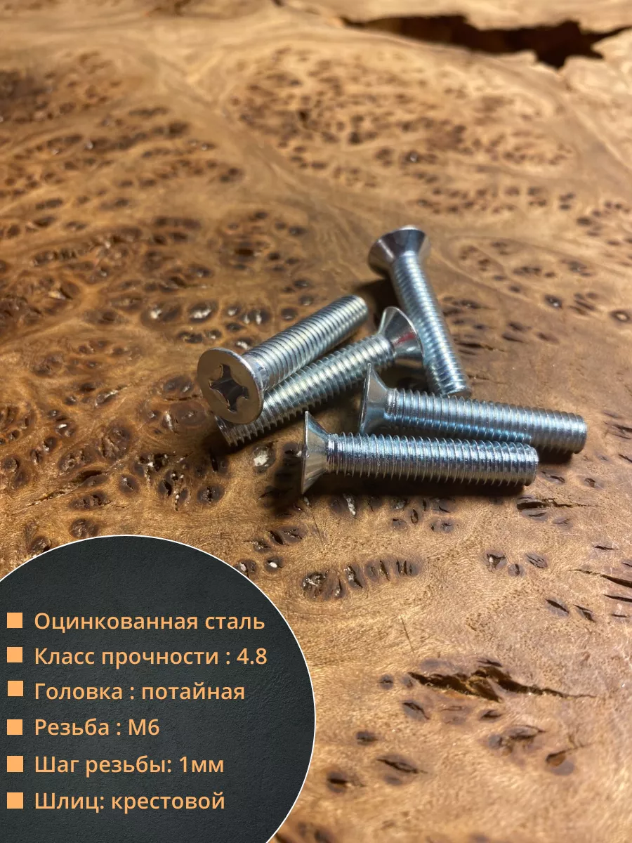 Винт потайной оцинкованный 6х25 DIN965, 50 шт.